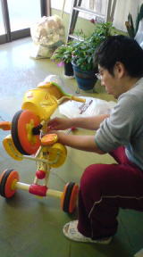 |  依亜の三輪車はモモちゃんに引き継がれます。パパが修理とお掃除♪