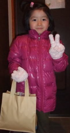 | 依亜、三学期スタートです。寒い、冷たい風の日でしたが、元気いっぱい登園し、お教室に入るとすぐY先生に「あけましておめでとうございます。ことしもよろしくおねがいします」とご挨拶していました。 |  |  ママは帰宅して家事。お迎えは11:45なので、アッという間です。