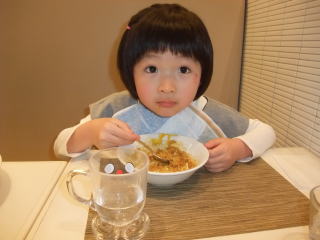 お夕飯の買い物へ行き、今夜はカレーを作りました。食べ始めて少しすると、パパから帰宅の電話が。車で迎えに行き、三人でお夕飯となりました。依亜はパパとお風呂に入り、22時過ぎと少々遅めに就寝しました。