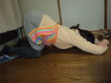 ママも眠気とお腹の張りで、夕方一時間横になりました。そして、夜は逆子体操をしたのですが・・・けっこうキツイ。