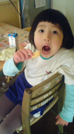 (いつものことですが)病院を出ると、急にお腹が空きます。パン屋さんでお昼を買い、スーパーマーケットでお買い物をして、Tちゃん宅へ依亜を迎えに行きました。依亜はユウタ君・トモ君兄弟と楽しく遊んでいました。腹ペコママ、早速パンをTちゃん宅で食べました。ママが食べ終えると、チビッコは寒いというのに公園で遊びたがり・・・結局、公園で少し遊ばせ、16時前に帰宅しました。