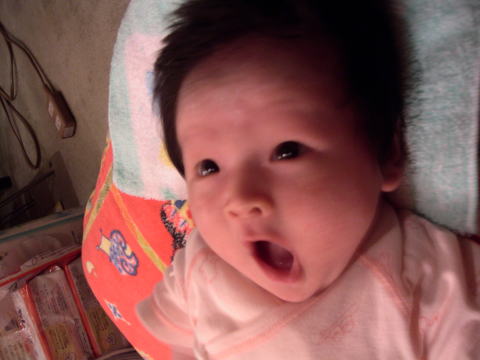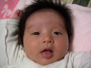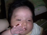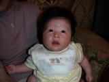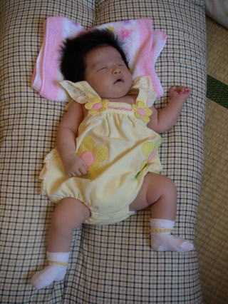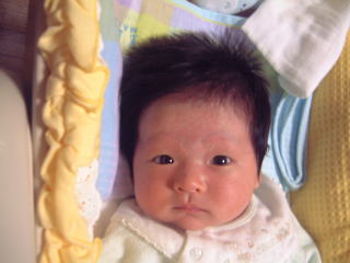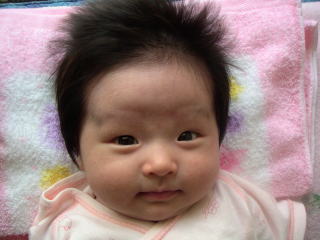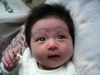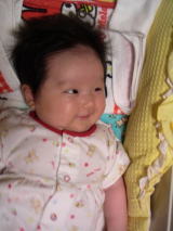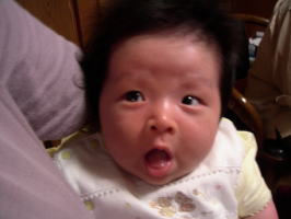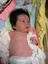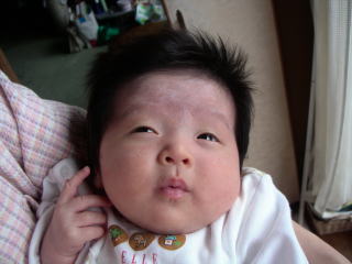 |  | パパに引けをとらない立派な腹。ママのミルクをイッパイ飲んで成長しています。 でも、ウンチが出ない・・・ |