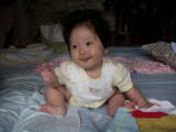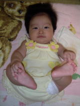 |  | パパジジが8月31日のお座り写真がお気に入りだって言ってくれたから、また頑張ってみたよ。 もう、依亜はお座りなんか簡単に出来ちゃうんだも〜ん。 |
