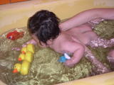 |  | 今日からお風呂は、あひる隊長、金魚、ダンボと一緒に入ります。 お風呂がモットモット楽しみになりました。 |