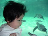 |  | 今日は水族館というところに来ました。とっても楽しみなんです。 今、目の前を何か通りました。 |