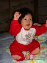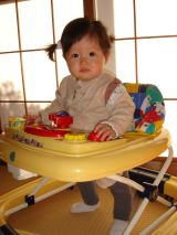 | 歩行器に乗ったよ UFOみたいで おもしろいよ 髪を結んだよ 似合うでしょ 可愛いでしょ |  |