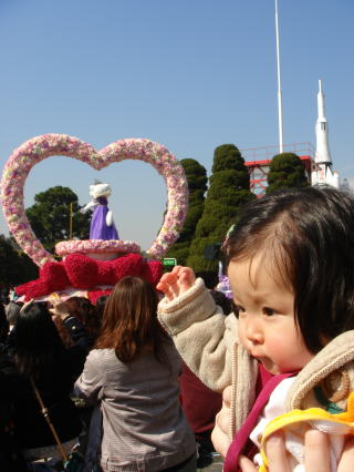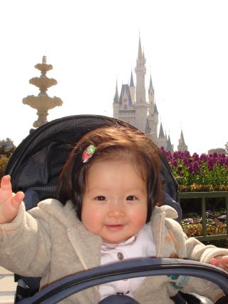 | ディズニーランドに 向けてレッツゴー!     |     ママ、、、本物のミッキーさん達は、いつも見ているのより、ズーット大きいんだね。 |