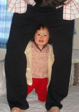 |  | パパのオマタからコンニチワ! パパ足が短いから、私くぐれないわ〜 |