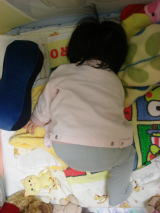 | うつ伏せで 腰を上げて 丸く小さく モゾモゾと 眠い眠い・・・ 顔を潰して 眠りにつきます |  |