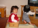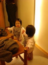 |  | 引き出しの中に入って満面の笑みのAskaちゃん。 扉をバタバタ開け閉めを繰り返して楽しむ依亜ちゃん。 大人の気持ちを知ってか知らぬか、とても自由な女児二人です。 |
