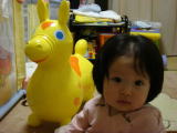 |  | 私の愛馬のボビーです。パパが顔を真っ赤にして一生懸命に膨らましてくれました。 (お友達のYo-ki君にもらったRODYにご満悦の様子) |
