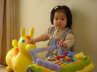|  | これがロバね。乗れないけど叩いて遊ぶの。 それと、こっちが歩く練習で使うヤツね。 あげないよ。 |