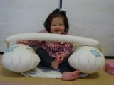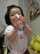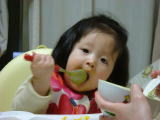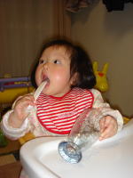 | パパは美味しくないって言うけど、このカボチャスープとっても美味しいよ。 自分で大きなスプーンを使って、ぜーんぶ飲んじゃうんだよ〜!! (ママが飲む分が無くなっちゃった) |  | ||||
