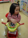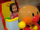 | 今日はアンパンマンに 乗って、おでかけです。   先日練習した”おねだり” を実践しました。  | でも、買ってもらうことは出来なかったの・・・ ちょっと疲れたので、休憩をしています。  | ||||