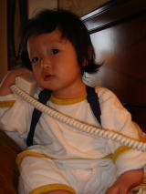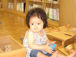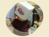 | メリーズ(紙オムツ)の 懸賞が当たったよ! (おもちゃの箱を頭からスッポリかぶる) |  (遊び方を間違えています。。。) |