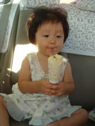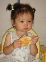 |  | 今日はお父さんの仕事ぶりを チェックしに行こうと思います。 パンを食べて腹ごしらえ!! |