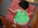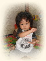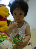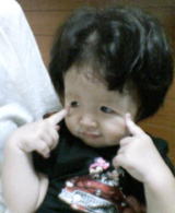 |  | ペタペタ ペータペタっと シール貼りは楽しいわ〜 私の顔にも頭にも・・・ パパが仕事から帰ってきたけど、昨日パパに貼ってあげたシールがヒジに付きっぱなし! パパって鈍感、気づかないのかしら?? |