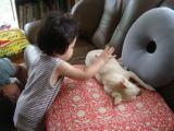 | 暑さでバテる犬(アトム君) その脇で 暑さでバテる男(怪獣パパ) それを叩き起こす 暑さに負けない女(依亜さん)  |  わたしは水遊びで とーっても愉快なのよね  |