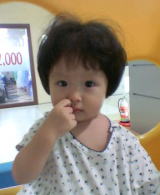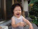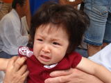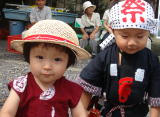 | 今日はパパの田舎のお祭りだよ。 コウ兄ちゃんと一緒に楽しんじゃうも〜ん。 ウキウキ♪  | ・・・と思っていたら、知らないおじちゃん達が私をベタベタ触るのよっ! それなのに、それなのに、ママもパパもニコニコ笑ってるの!!私を見捨てないで〜(半ベソ)  (それでいいの。これで無病息災、元気元気になるお祭りなんだよ。) |