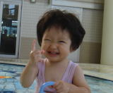 | プールに来ました 波がないから全然コワくないよ 水泳選手になりたいわ!  | オリンピックに出場したら 私が1番になっちゃうよ  |