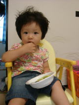 | 朝  毎朝、NHK教育を見ながら朝食しています。 | 夕  朝と同じ番組の再放送を見ながら、菓子食べます。 | ||