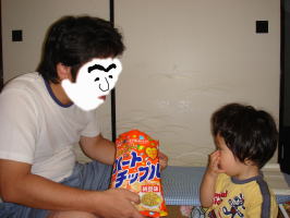 | スナックばかり食べて、 お家ではグータラしている お父さんが。。。  | 恭子お姉ちゃんに散髪してもらって、キリッと二枚目になってしまいました そんなお父さんが大好きです  お姉ちゃんは、自信満々に散髪を始めましたが、依亜のヘアーカット以外に経験がないそうです そんなチャレンジ精神旺盛なお姉ちゃんも大好きです | ||