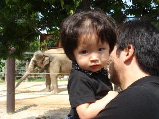 | 大きな象と私  東京上野動物園に遊びに来ました | おかしな猿と私  面白い顔で人気者だったよ | ||
