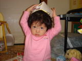 | この帽子を取ると何があるでしょう!?  えーわかんないの?? | 髪の毛が出てきま〜す!  | ||