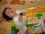 | お遊戯の練習中  隣でお姉ちゃんも踊ってます | お食事の待機中  隣でお父さんも腹ぺこ待機中です |
