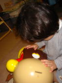 |  | アンパンマンの貯金箱を貰ったの。 お金をチャリンって入れると、音楽が流れるの。 でも、お金が入ってないなくて、つまらないなぁ・・・ ねっねっ、お金をチャリーン チャリーンって いっぱーい入れてぇ〜 |