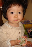 |  オーニギーリ〜 おいしいの〜♪ わたしのわたしの コロコロリン お口の中に転がってくるの。 ほっぺも落ちて コロコロリーン | あそこでオニギリ食べてる子 お口の周りもご飯だらけだよ プププ 笑っちゃうね  |