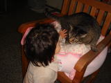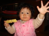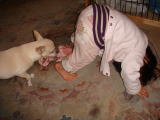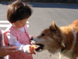 | 9月8日と9月29日にも登場した通称ムックです。 ほら、この通りお肉さえあげれば、たやすく手なずけることが出来るのです。    | あっ 手は噛まないで下さいね。 私の手なんか美味しくないんだからっっ  |