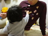 | 張るところ無くなっちゃったから パパの体にも、ついでにペタペタ |  |