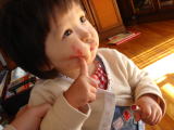 | 口紅なのに頬紅になっちゃった 頬も手も服も口紅だらけ・・・  | |