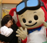 | 「きき丸」という某玩具メーカーのキャラクターに出くわしたので、写真を撮ることにしました。あまりお客さんが居なくて寂しそうでした。 |  |