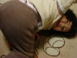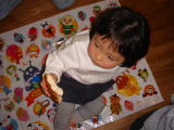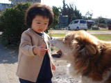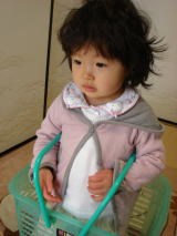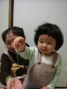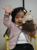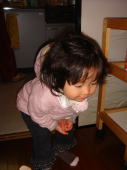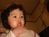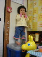 | 以前のおねだり練習(2006年4月15日依亜写真)から10ヶ月。なかなか思うようにいきません。 ということで、駄々こねる練習中  | さらに 指をくわえて物欲しげにする練習中  |