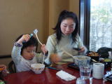 |  | ママ このウドン食べたいの? しかたないなぁ・・・ 短く切ってあげるからね |