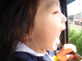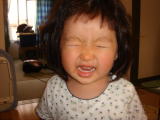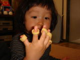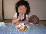|  | ママがイチゴのショートケーキを買ってくれました。わたしは指でケーキをホジホジ・・・クリームとイチゴだけをムシャムシャ