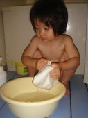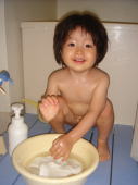 | 依亜はお風呂場でお洗濯です 何を洗っているか?ですって!  | お恥ずかしながら、カキ氷で おなかも冷えてしまったのでしょうか おもらしをしてしまったようで 自分のオムツを洗っているのです  |