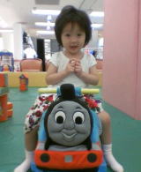 |  | トーマスに乗ったよ 動かないけど、かわいいね (パパ:そうかなぁ・・・かわいいかなぁ) |