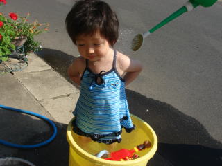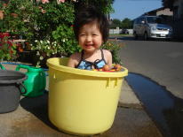|  | ↑美容院でサッパリしたよ ←ボーイッシュで似合うでしょ? バケツのお風呂 ↓ジョウロのシャワーつき |