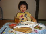 | お姉ちゃんが釣ったホッケ おいしそう!ごちそうだね。 (釣ったんじゃなくて 買ってきたんじゃないかな?) |  |