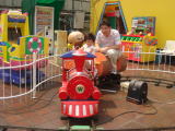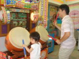 | そんな朝でしたが、 デパートの屋上で 電車に乗ったり  | 太鼓をドンドン叩いたり・・  ・・・・・・ お父さんが楽しんでいました |