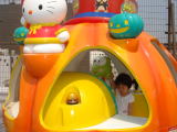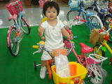 | お父さんに付き合いきれないので  おかあさんと”キティちゃん”に乗りました | 見て〜自転車に乗れそうよ!  (三輪車も漕げないのに?) |