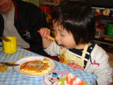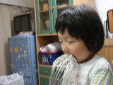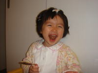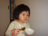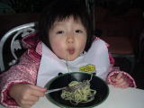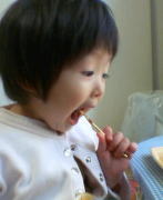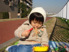 | ずるずる〜  (ママ:立って食べない!座りなさいっ!) |  聞こえましぇ〜ん | ||