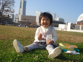 | ポカポカ陽気  街に繰り出しました  | 芝生広場でお菓子を食べていると  | ||