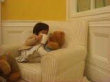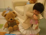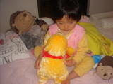 | あなたも今日から私のお家にいらしゃったのね お名前は何にしようかしら? あっ考えるまでもなく、プーさん、だわね 一緒に寝ましょっ |  | ||