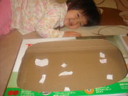 | コレ、おとさんのイメージ→ 空き箱の上に切った紙を並べたよ 私のアート、みんなに伝わるかしら? |  | ||