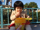 |  誰よりも高いので、何でも覗けます |  大きなお兄ちゃんたちがサッカーしてるね 「がんばれ〜っっ!」 ついでに下にいるお父さんも 「がんばれ〜っっ!」 | ||