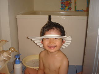 | 数億年(?)の月日が過ぎ ようやく陽の目を見た シャンプーハット お顔が濡れなくて安心!ということに、 私もやっと気がつきました |  | ||